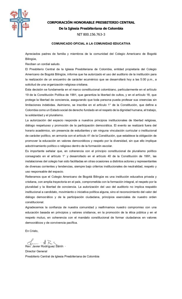 El Colegio Americano de Bogotá es una institución educativa mixta, de calendario A, ubicada en el corazón de Teusaquillo, que ofrece una formación trilingüe en inglés, portugués y español. Con más de 150 años de historia, somos un colegio con profunda tradición académica, una visión internacional y un compromiso con los valores cristianos y el desarrollo integral de cada estudiante.